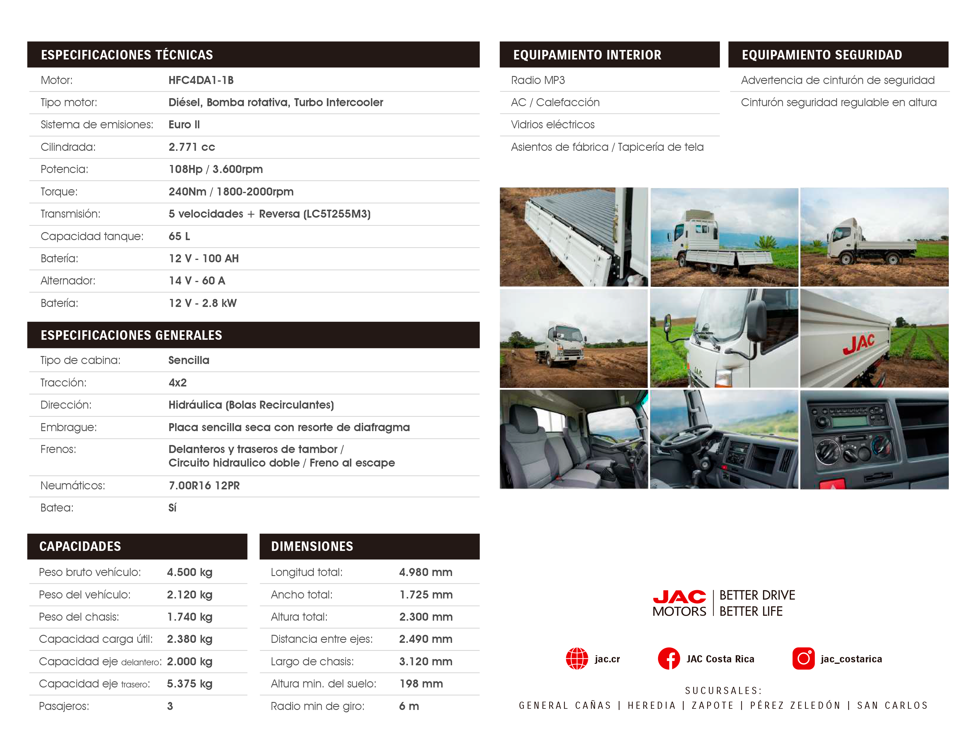 Los camiones JAC cuentan con vidrios eléctricos, aire acondicionado, radio con USB y portavasos.